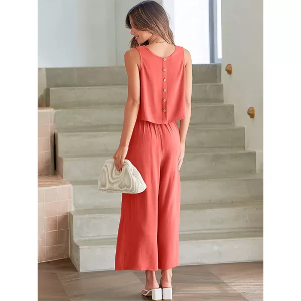 imageANRABESS Womens Summer 2 Piece Outfits Sleeveless Tank Crop Button Back Top Cropped Wide Leg Pants Set PocketsPeach