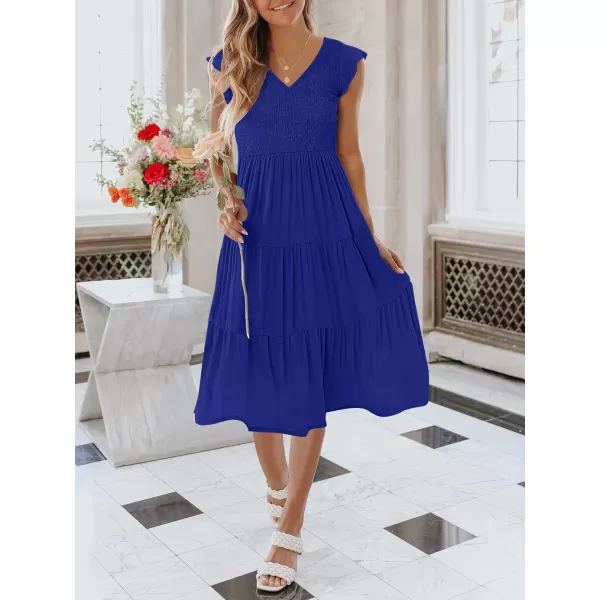 ANRABESS Women's Summer Casual Flutter Short Sleeve V Neck Smocked A-Line Tiered Midi Beach Dress(Royal Blue)
