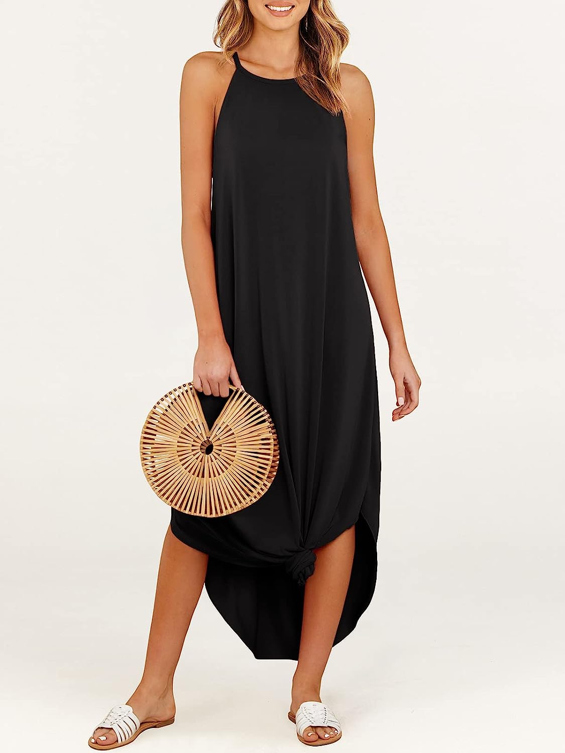 Design – Sleeveless, halter neck,long dress,side slit, summer beach dress,solid dress, casual loose fit.