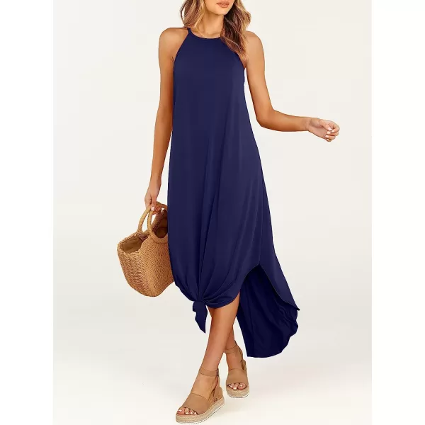 ANRABESS Women's Summer Casual Halter Neck Sundress Sleeveless Split Maxi Long Beach Dress with Pockets(Navy Blue)