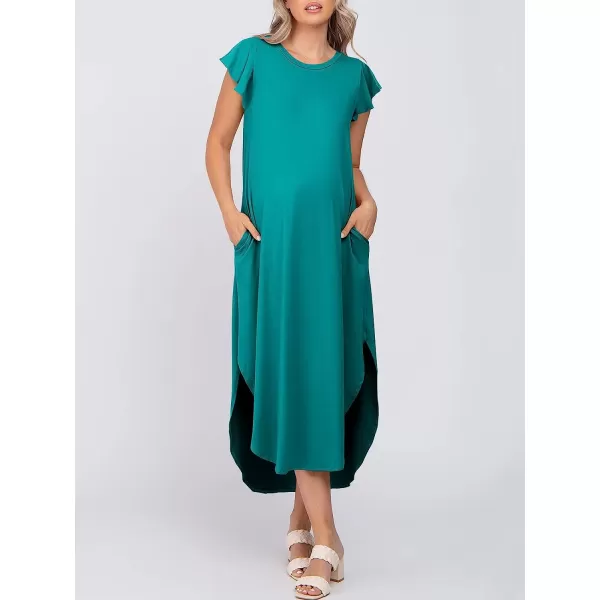 Features – Cute flutter sleeves,crewneck,maxi length,slit side,pockets.curve hem,beach dress.