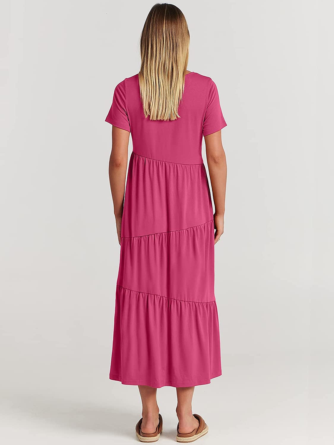 features – short sleeve,crewneck,maxi dress,tiered flowy skirt,basic cute beach dress with pockets.