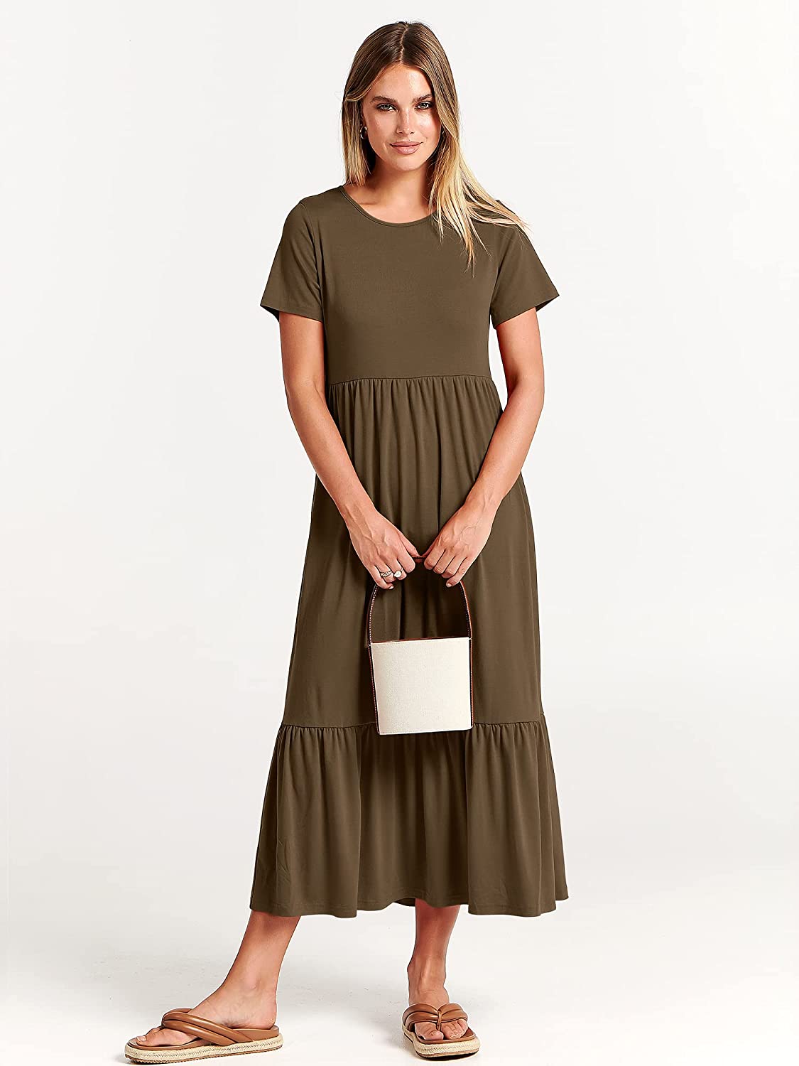 features – short sleeve,crewneck,maxi dress,tiered flowy skirt,basic cute beach dress with pockets.