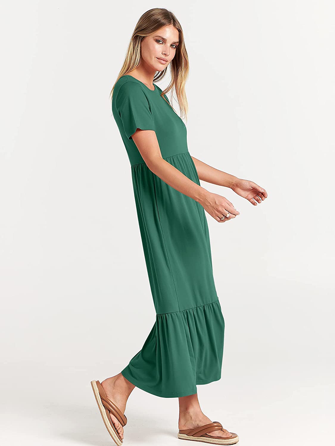 features – short sleeve,crewneck,maxi dress,tiered flowy skirt,basic cute beach dress with pockets.