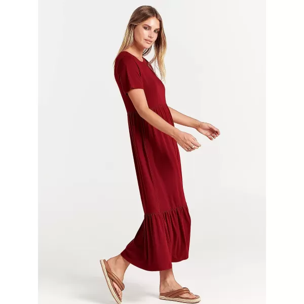 ANRABESS Women's Summer Casual Short Sleeve Crewneck Swing Dress Casual Flowy Tiered Maxi Beach Dress with Pockets(Wine Red)
