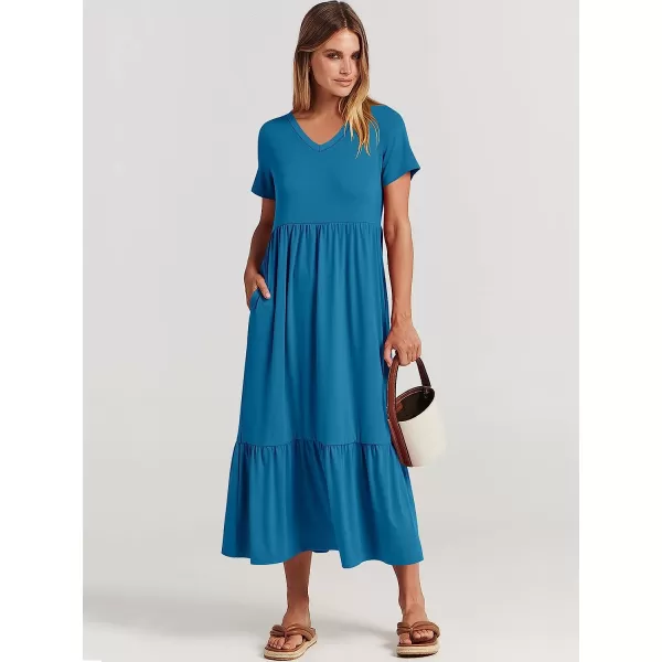 ANRABESS Women's Summer Casual Short Sleeve V Neck Swing Dress Casual Flowy Tiered Maxi Beach Dress with Pockets(Sky Blue)