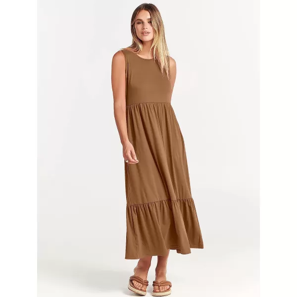 ANRABESS Women’s Summer Casual Sleeveless Crewneck Swing Sundress Fit & Flare Flowy Tiered Maxi Dress with Pockets(Khaki)