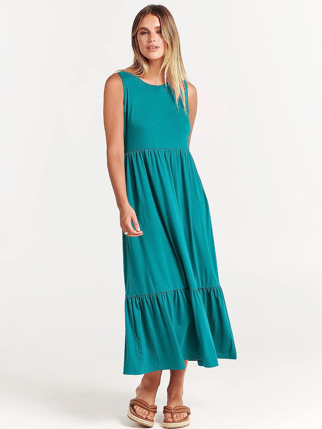 Features – Stretch, casual style, sleeveless,two side pockets, round neck, maxi length,empire waist,elastic at waist,tiered skirt,not lined, beach dress, It is perfect for summer, Spring and fall.