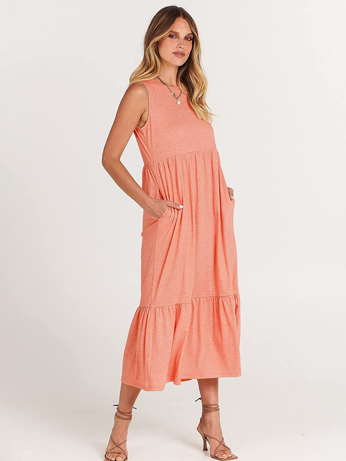imageANRABESS Womens Summer Casual Sleeveless Crewneck Swing Sundress Fit amp Flare Flowy Tiered Maxi Dress with PocketsPink