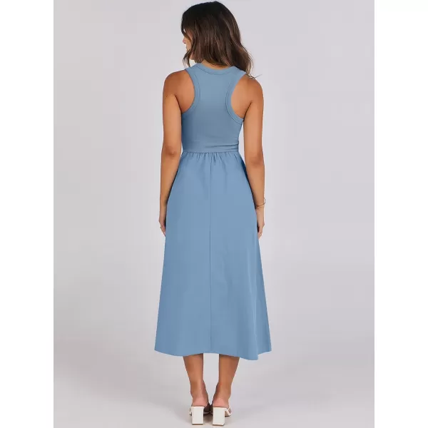Get the ANRABESS Women’s Summer Casual Sleeveless Midi Sundress Knit High Neck Tank Top Racerback Flowy Dresses with Pockets(Gray Blue) you want at a price you can afford with our markdown sale.