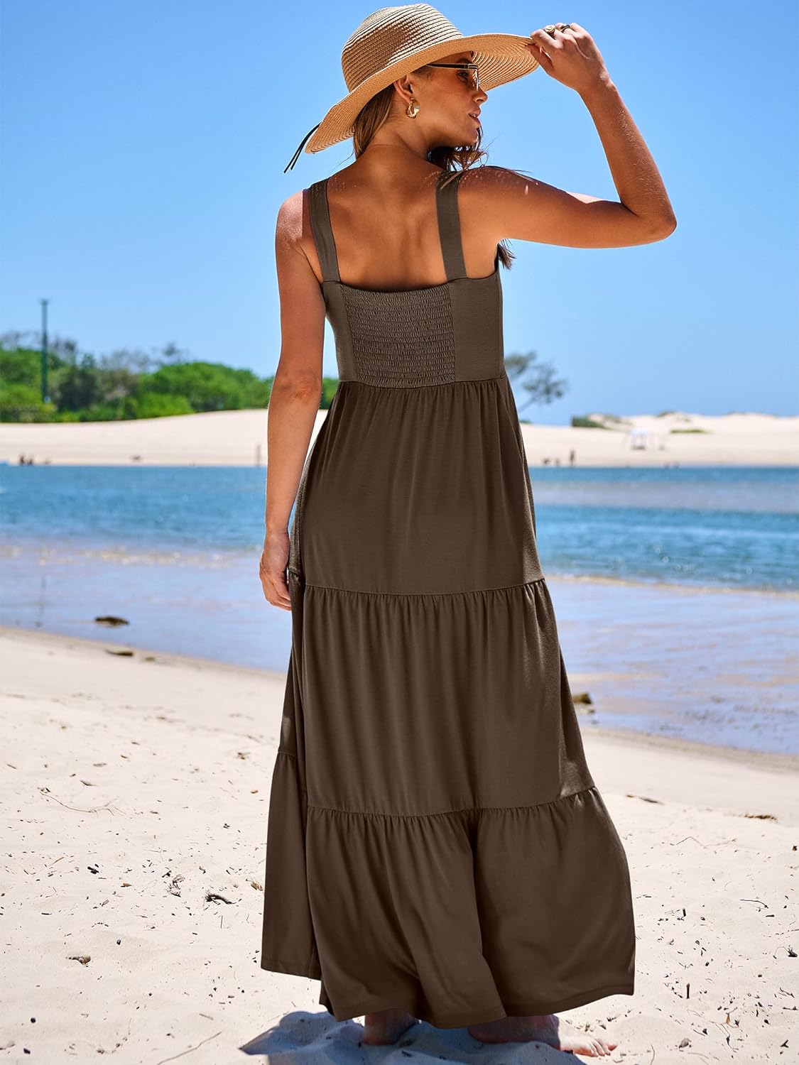 ANRABESS Women's Summer Casual Sleeveless Square Neck Swing Dresses Flowy Tiered Long Maxi Beach Sun Dress with Pockets(04 Coffee)