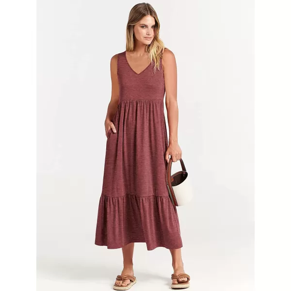 imageANRABESS Womens Summer Casual Sleeveless V Neck Swing Dress Casual Flowy Tiered Maxi Beach Dress with Pockets04red
