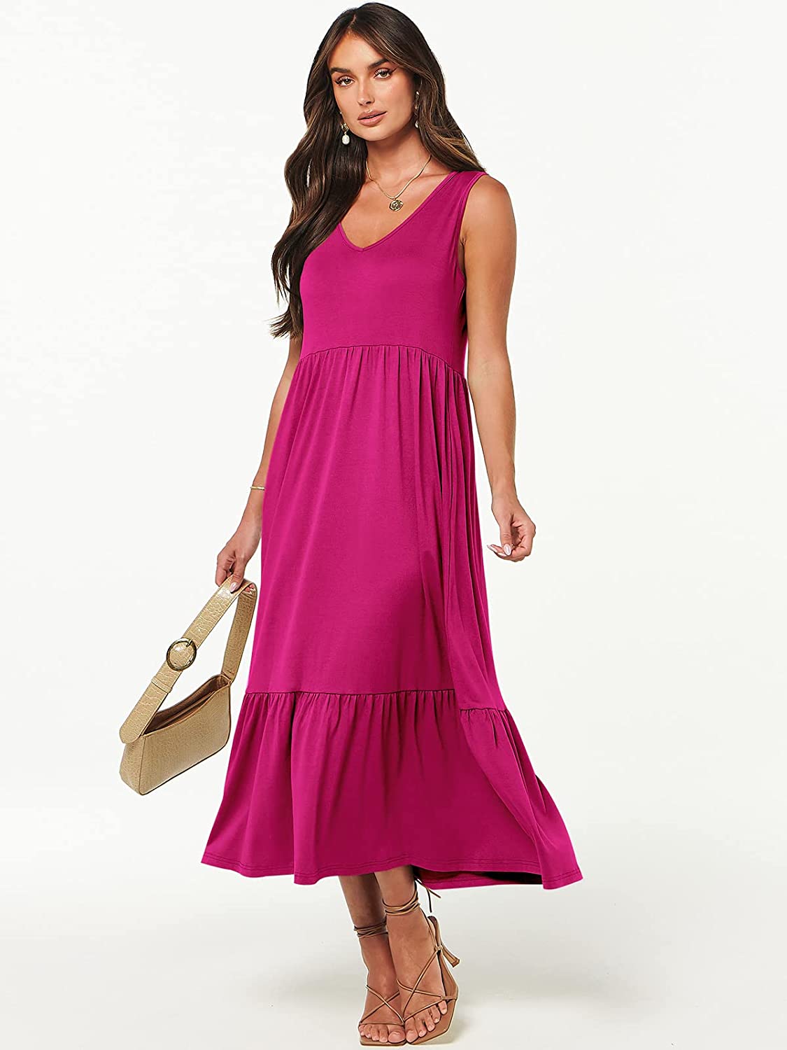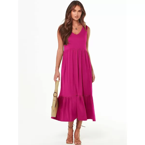 ANRABESS Women's Summer Casual Sleeveless V Neck Swing Dress Casual Flowy Tiered Maxi Beach Dress with Pockets(05-rose)
