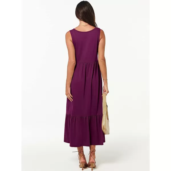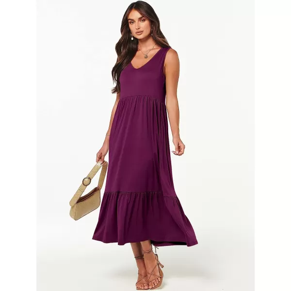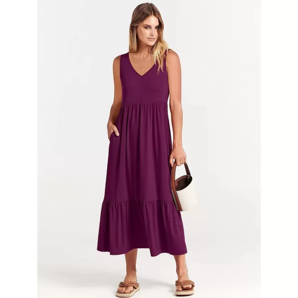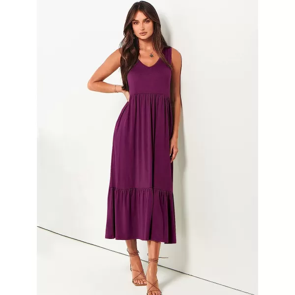 ANRABESS Women’s Summer Casual Sleeveless V Neck Swing Dress Casual Flowy Tiered Maxi Beach Dress with Pockets(07-dark Purple)