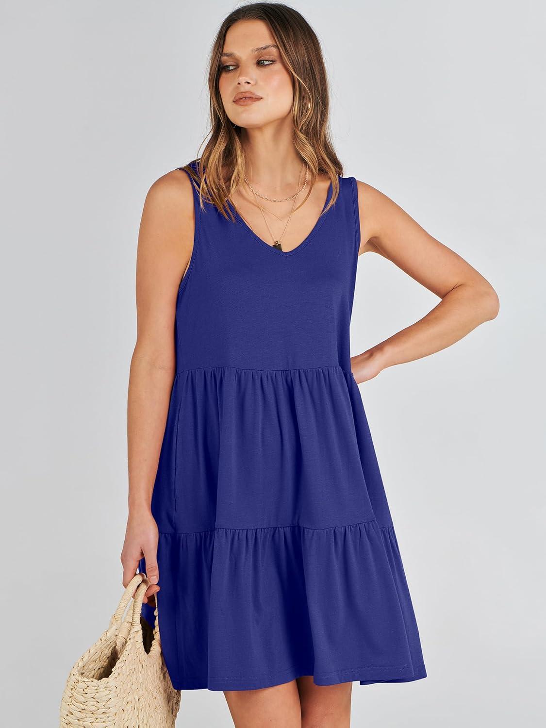 ANRABESS Womens Summer Casual Tank Dress Sleeveless V Neck T Shirt Sundress Flowy Tiered Swing Mini Beach Vacation Dresses(Royal Blue)