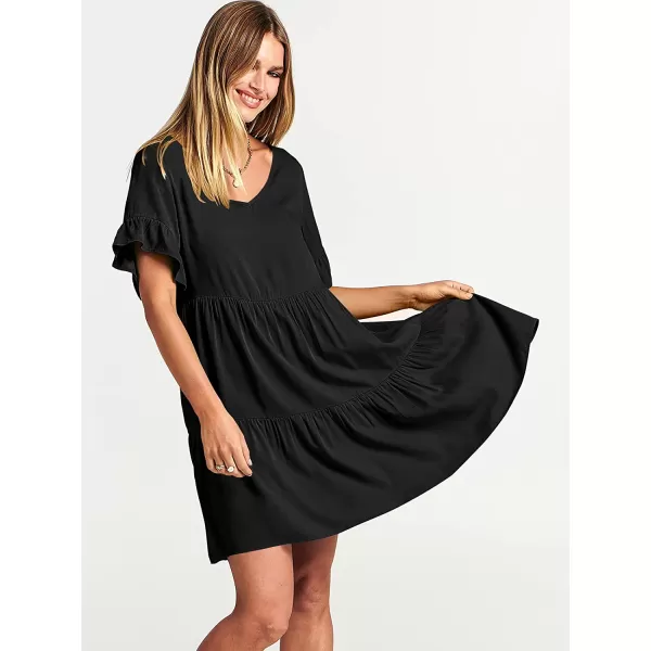 ANRABESS Women’s Summer Casual V Neck Babydoll Dress Ruffle Short Sleeve Tiered A-Line Flowy Mini Beach Dress(Black)