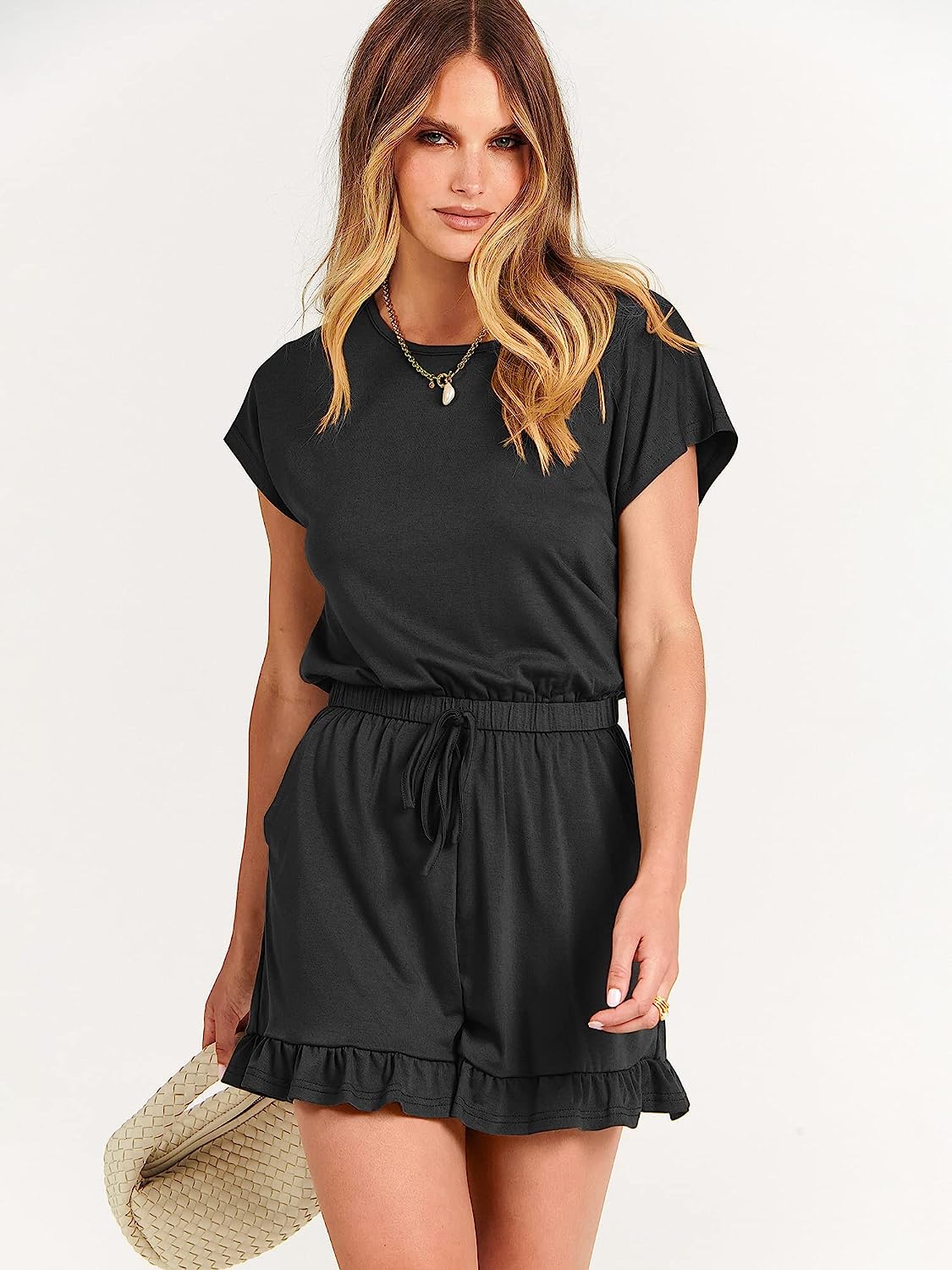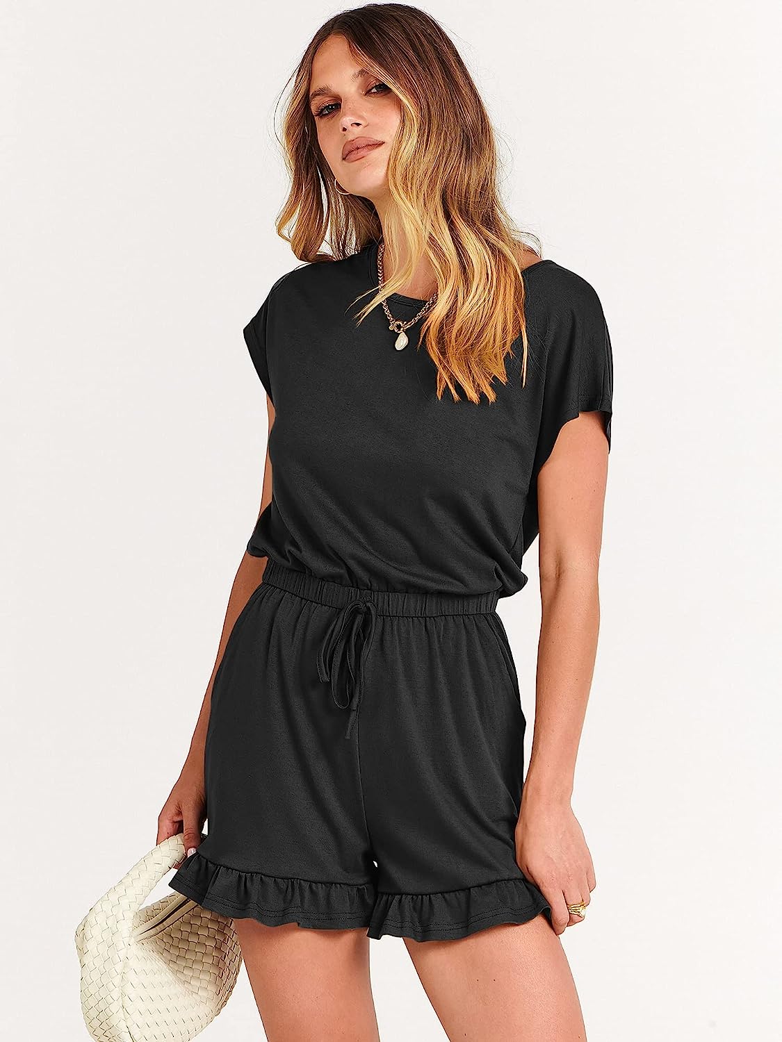 ANRABESS Women’s Summer Crewneck Casual Loose Short Sleeve One Piece Jumpsuit Rompers Outfits with Pockets(00 Black)