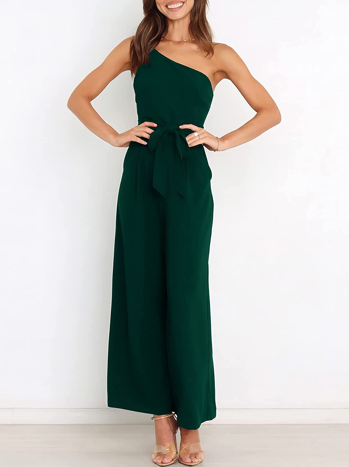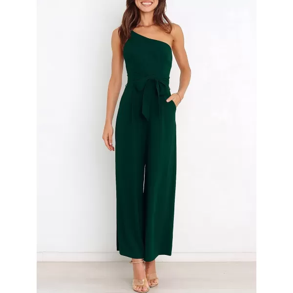 imageANRABESS Womens Summer Dressy One Shoulder Sleeveless Tie Waist Backless Casual Wide Leg Jumpsuit Rompers PocketsDeep Green