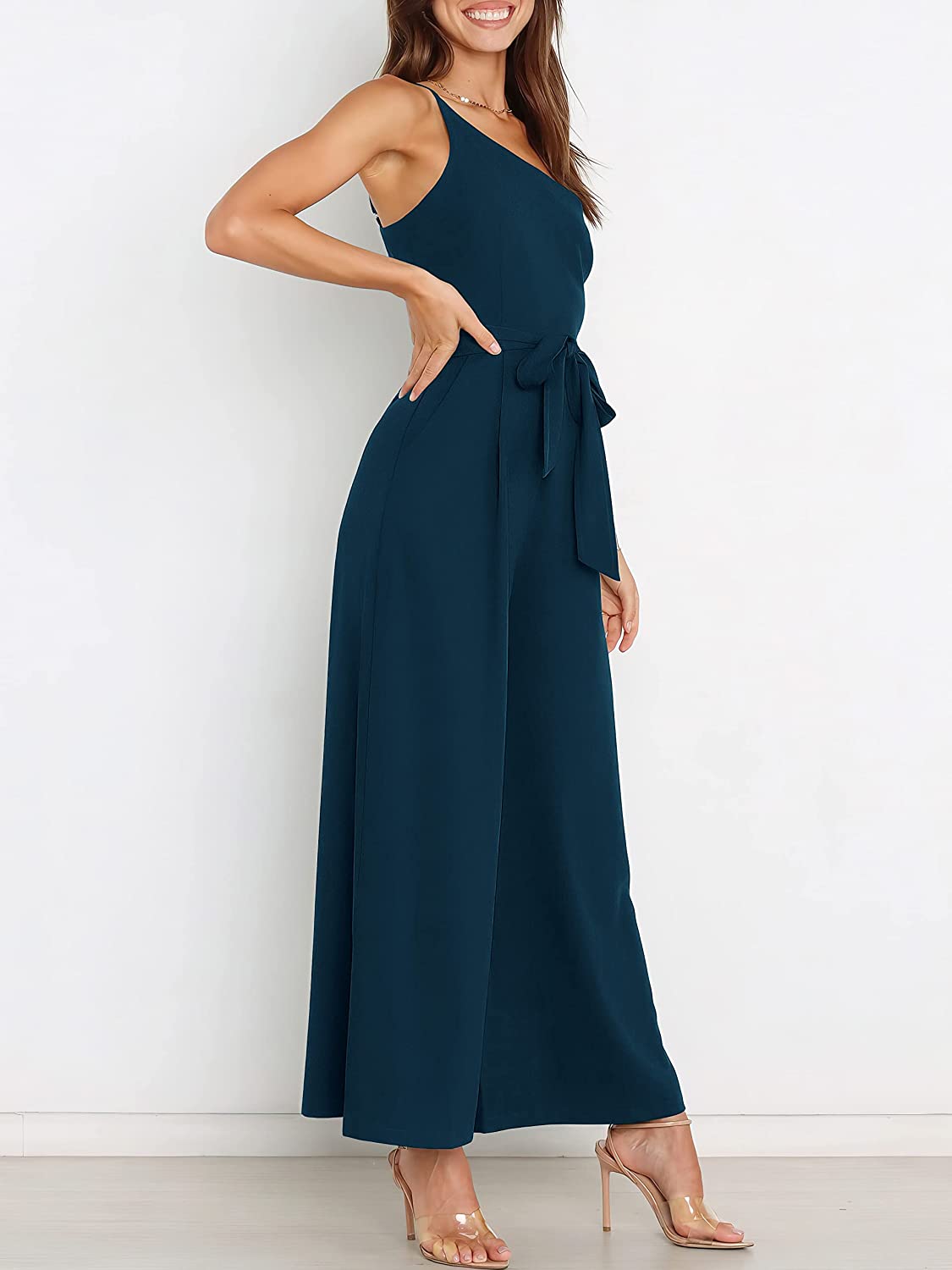 imageANRABESS Womens Summer Dressy One Shoulder Sleeveless Tie Waist Backless Casual Wide Leg Jumpsuit Rompers PocketsNavy Blue