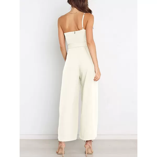 imageANRABESS Womens Summer Dressy One Shoulder Sleeveless Tie Waist Backless Casual Wide Leg Jumpsuit Rompers PocketsWhite
