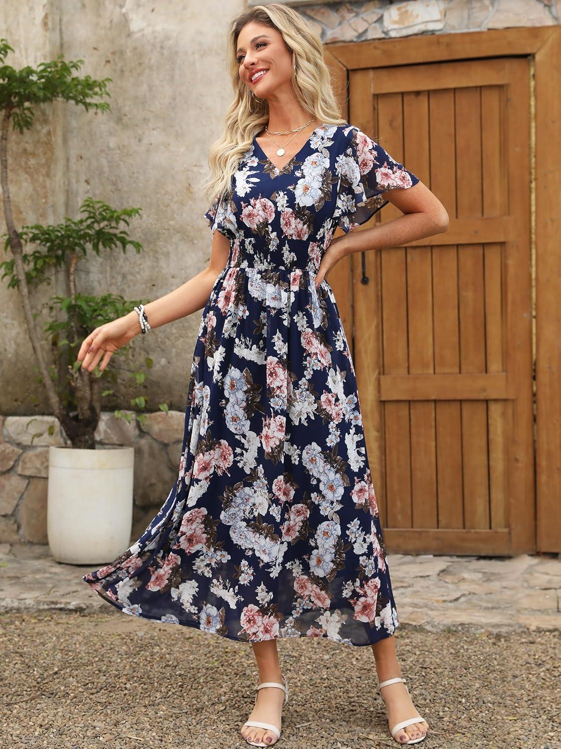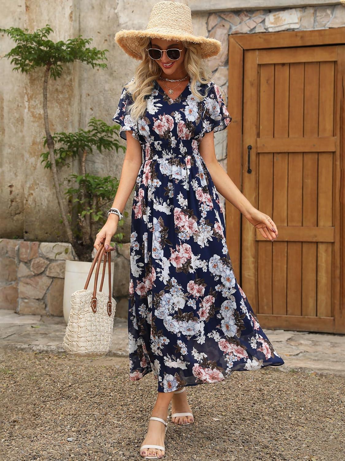 Save up to 40% on ANRABESS Womens Summer Floral Maxi Dress Casual V Neck Short Sleeve Chiffon Boho Flowy Beach 2025 Wedding Guest Long Dresses(Navy Flor) styles during our end-of-season sale.