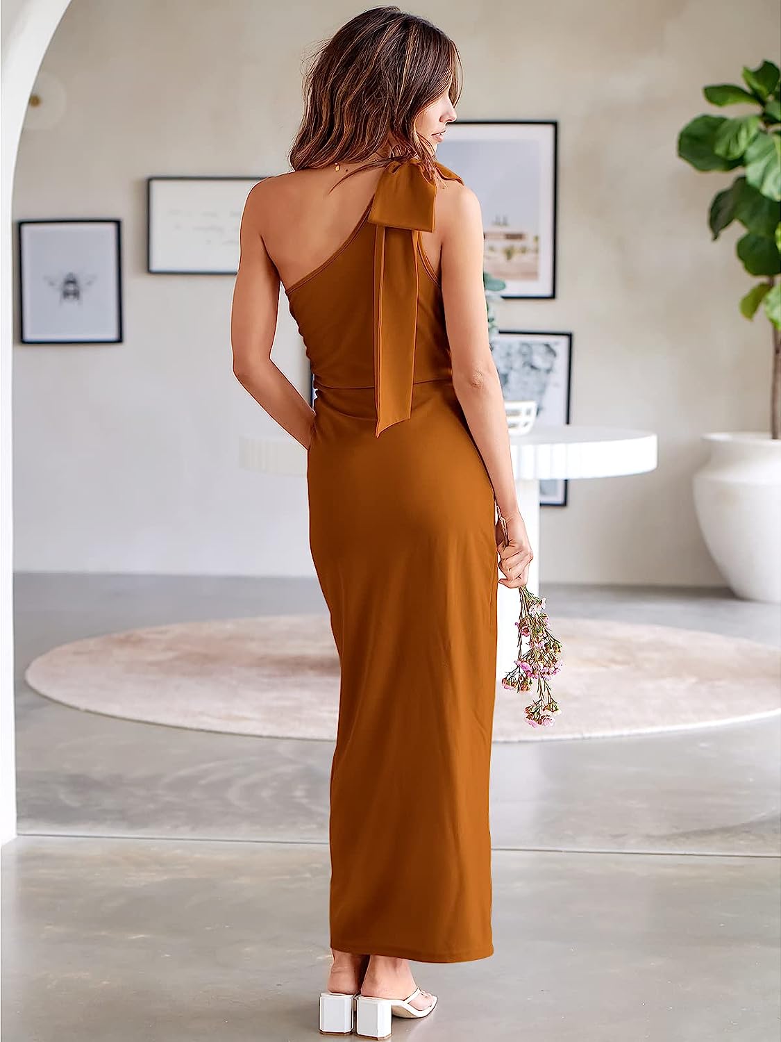Design – One Shoulder Sleeveless Dress/ Maxi Dress/ Long Flowy Dresses For Women/ Summer Dresses With High Slit/ Ruched Bodycon Dresses/ Sleeveless Dress/ Elegant Empire Waist Dresses For Women/ Cute Bow Dresses