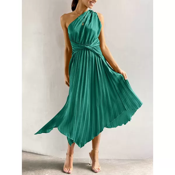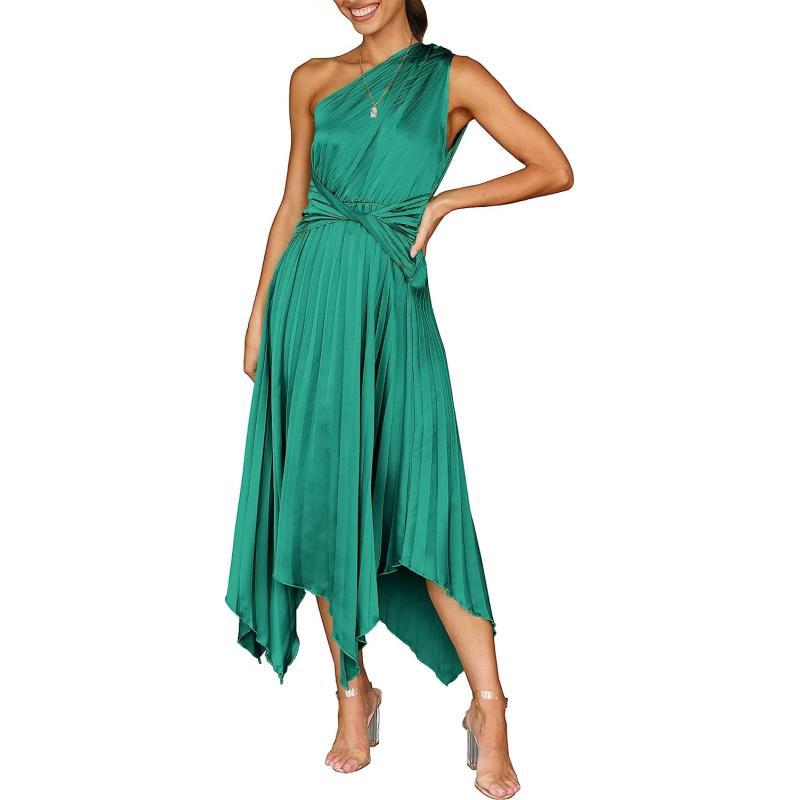 Stylish Design – One Shoulder Midi Dress /Sleeveless Dress For Women/Asymmetrical Hem Dress/Twist Waist Front Dresses/Fitted Dress /Solid Color Dresses/Midi Length Dress/Satin Dress For Women/Club Party Dress For Women/Pleated Cocktail Dress/Evening Dress For Women/Elegant Wedding Guest Dress