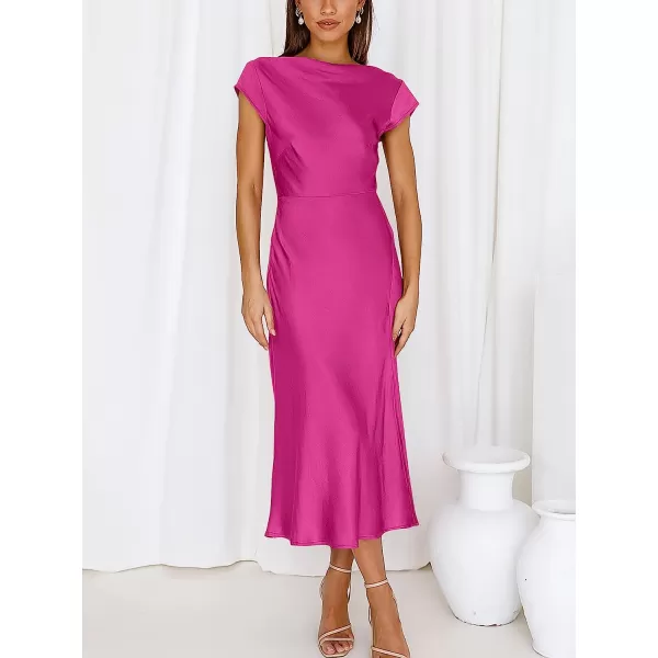 ANRABESS Women's Summer Satin Dress Short Sleeves Elegant Bodycon Cocktail Formal Midi Dress(Rose Red)