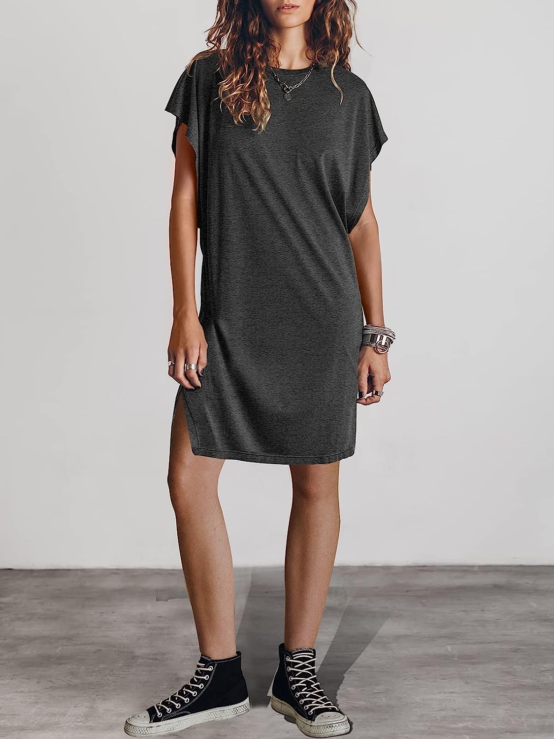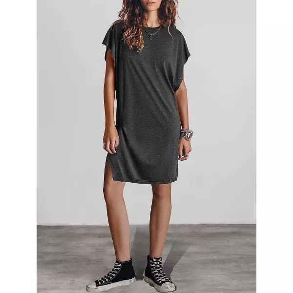 ANRABESS Women’s Summer Short Sleeve T-Shirt Dress Casual Loose Slit Beach Mini Dress Tunic Top(Dark Gray)
