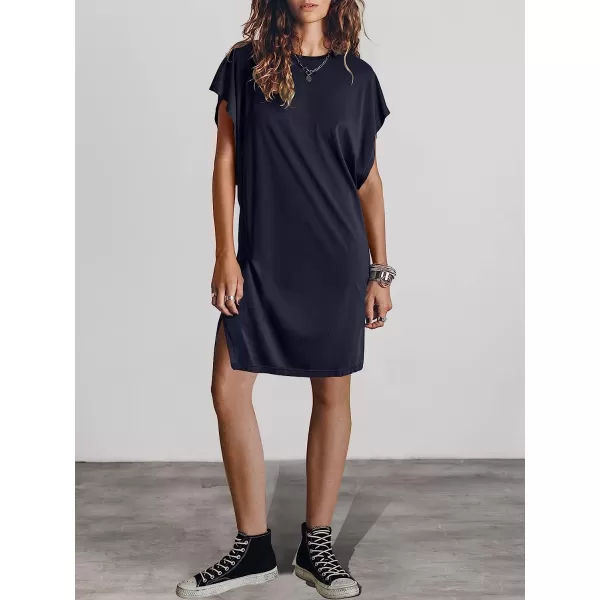 ANRABESS Women’s Summer Short Sleeve T-Shirt Dress Casual Loose Slit Beach Mini Dress Tunic Top(Navy Blue)