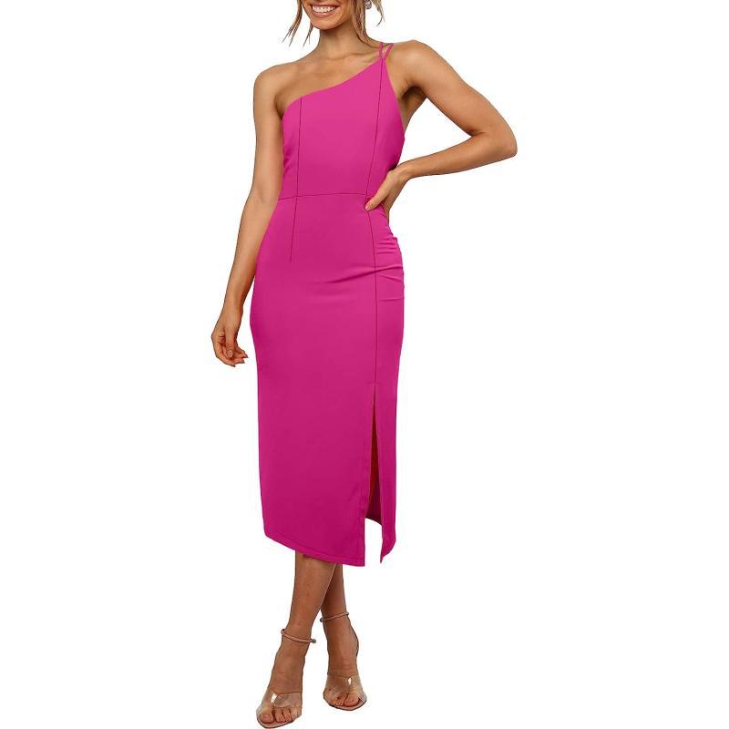 Features – One Shoulder Dresses For Women,Sleeveless Bodycon Dress,Womens Dress With Slit,Spaghetti Strap Dress,One Strap,Adjustable Strap,Slim Fit,Below Knee Length,Side Split,Solid Color,Sexy Yet Classy,Formal Dresses For Women,Asymmetrical Dress For Women,Fitted Sleeveless Ribbed Knit Midi Dress