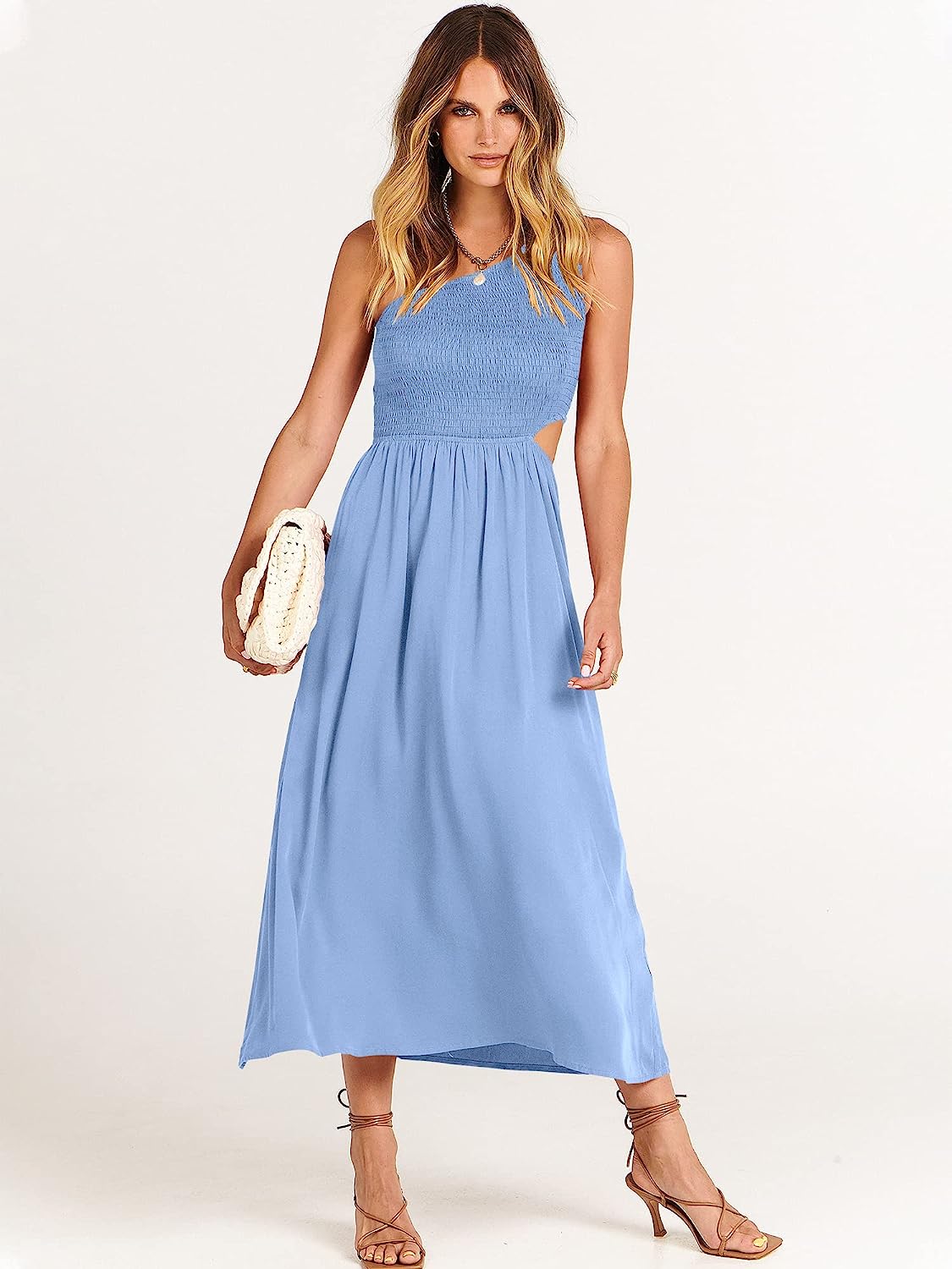 Don’t break the bank! Get the ANRABESS Women’s Summer Sleeveless Smocked One Shoulder Cutout Sundress Flowy A-Line Beach Long Maxi Dress you want at a price you can afford during our markdown sale.