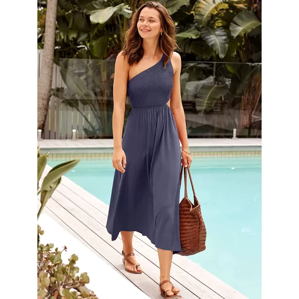 imageANRABESS Womens Summer Sleeveless Smocked One Shoulder Cutout Sundress Flowy ALine Beach Long Maxi DressNavy Blue