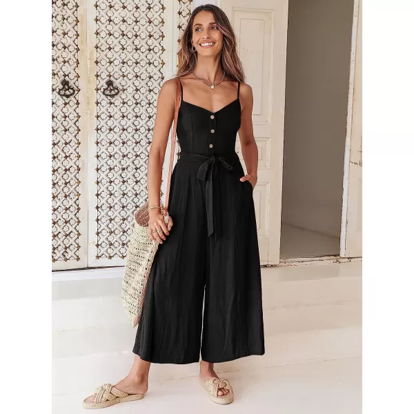 imageANRABESS Womens Summer Spaghetti Straps V Neck Smocked Wide Leg Jumpsuits Rompers With BeltBlack