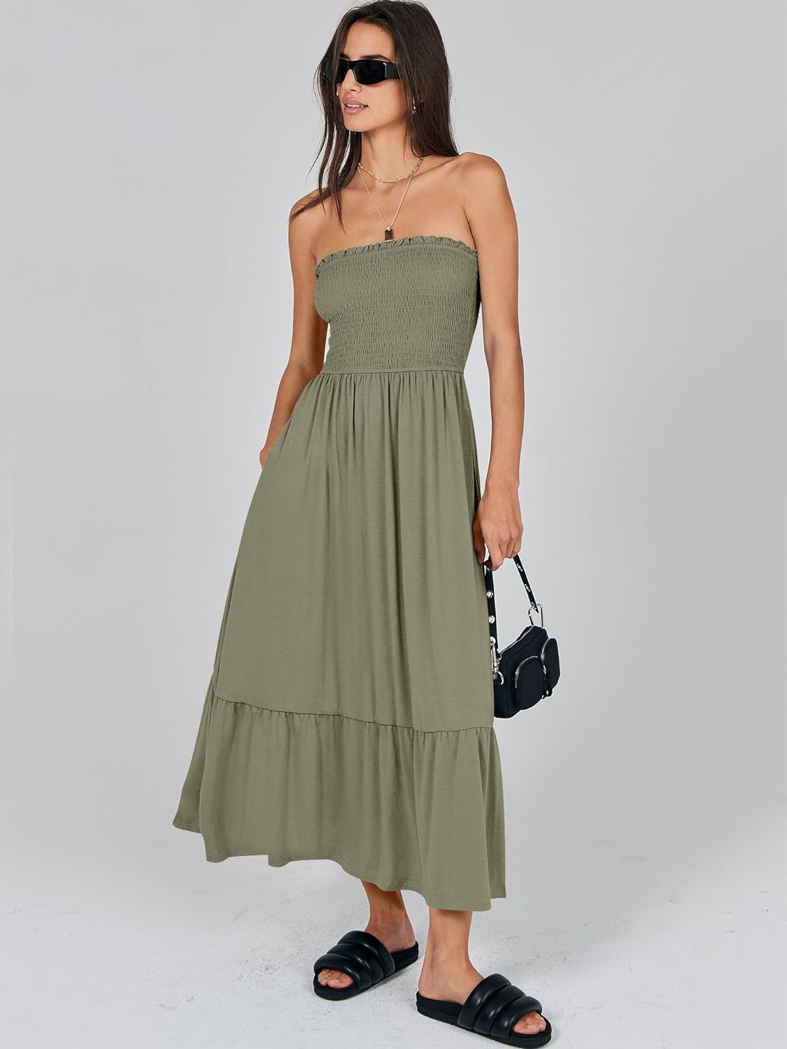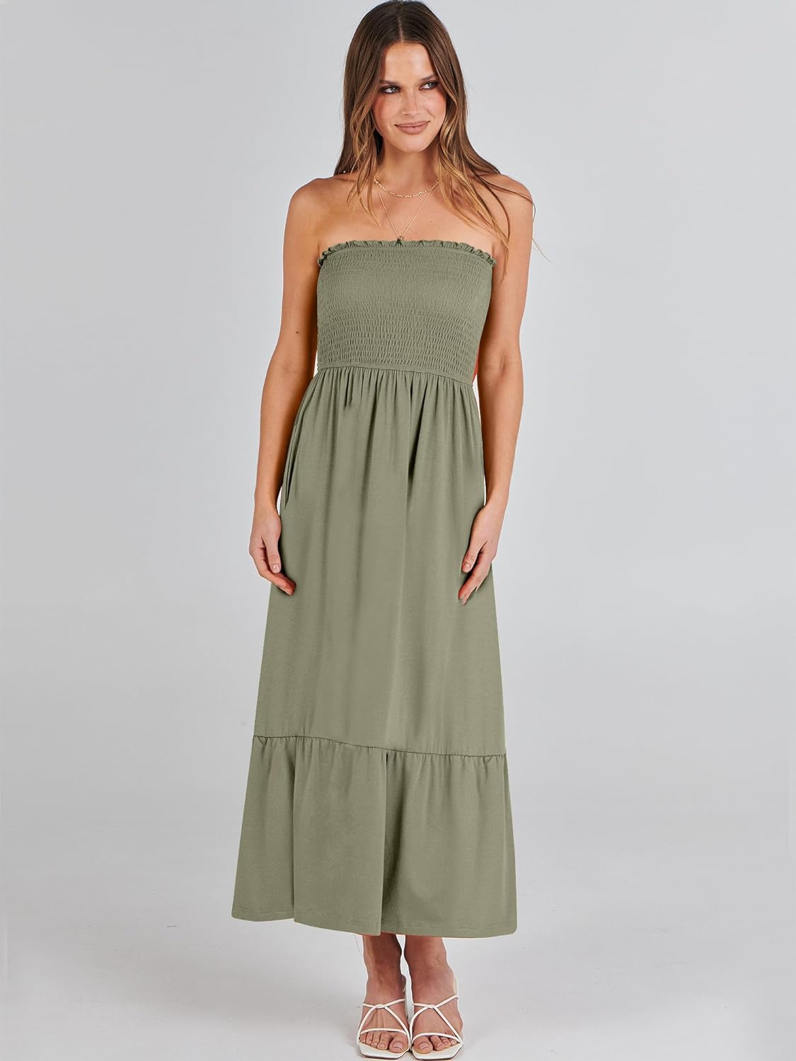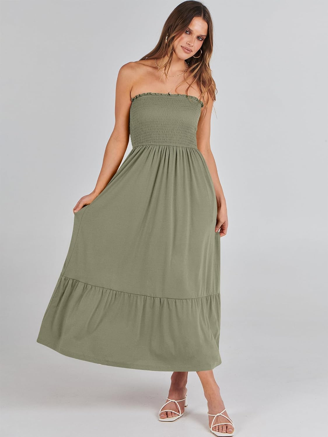 Be the first to review “ANRABESS Women’s Summer Strapless Smocked A-Line Fit Flare 2024 Fashion Boho Beach Party Long Maxi Dress with Pockets(Olive)” Cancel reply