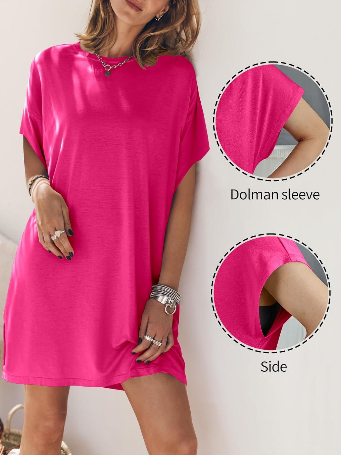 ANRABESS Women’s Summer T Shirt Dress 2025 Beach Vacation Travel Outfits Casual Simple Soft Mini Sundress Cover Up Clothes(Hot Pink)