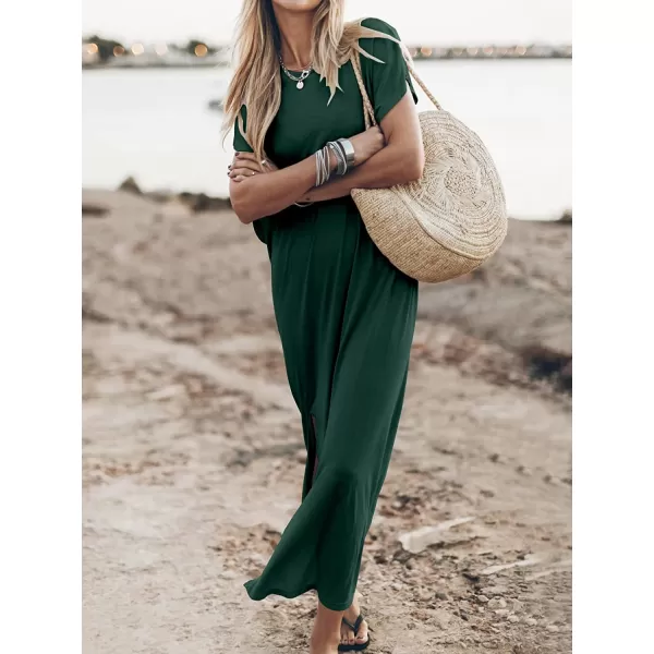 imageANRABESS Womens Summer TShirt Maxi Dress Batwing Sleeve Crewneck Casual Loose Slit Side Long Beach DressesDark Green