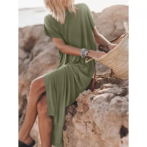 imageANRABESS Womens Summer TShirt Maxi Dress Batwing Sleeve Crewneck Casual Loose Slit Side Long Beach DressesOlive