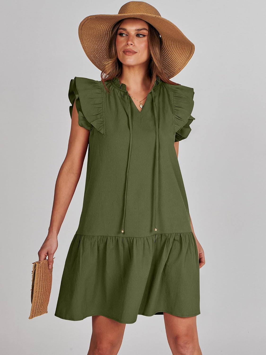 Be the first to review “ANRABESS Womens Summer V-Neck Drawstring Ruffle Cap Short Sleeve Casual Shift Mini Dress with Pockets(Army Green)” Cancel reply
