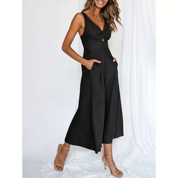 ANRABESS Women's Summer Wide leg Jumpsuits V Neck Smocked Cutout High Waist Thick adjustable straps Rompers(Black)