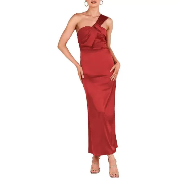 ANRABESS Women’s Satin One Shoulder Wedding Guest Bodycon Dress Cocktail Evening Party Maxi Dresses(Red)