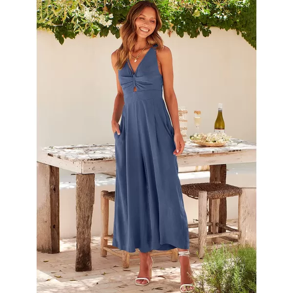 imageANRABESS Womens Summer Wide leg Jumpsuits V Neck Smocked Cutout High Waist Thick adjustable straps RompersDeep Blue