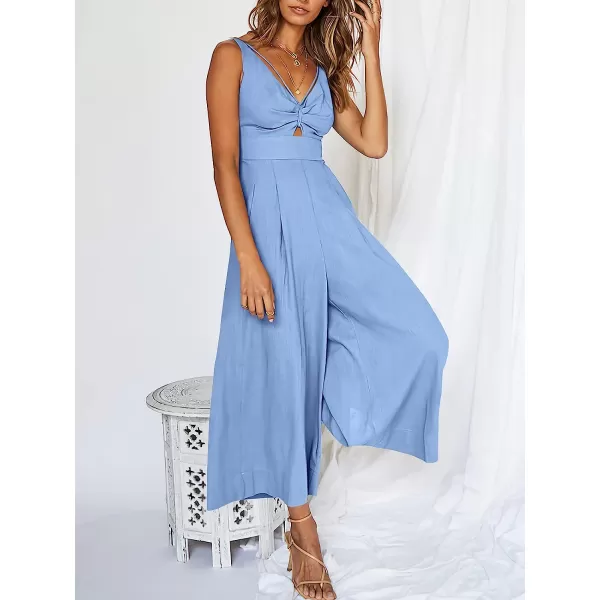 imageANRABESS Womens Summer Wide leg Jumpsuits V Neck Smocked Cutout High Waist Thick adjustable straps RompersSky Blue
