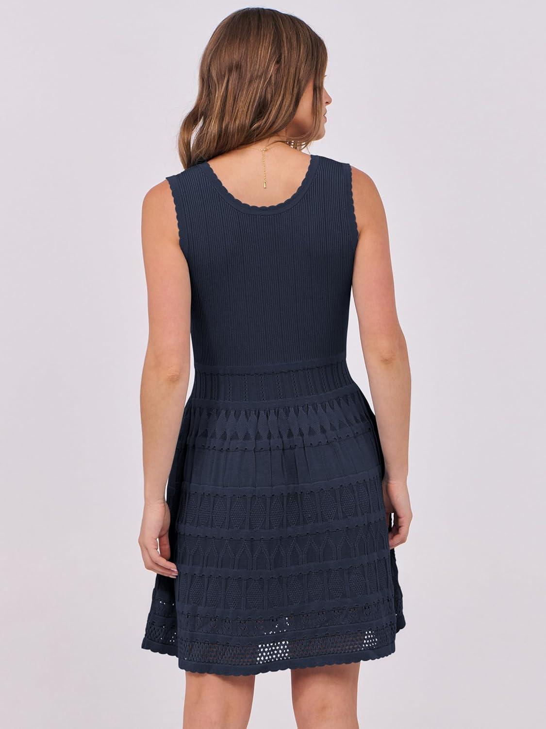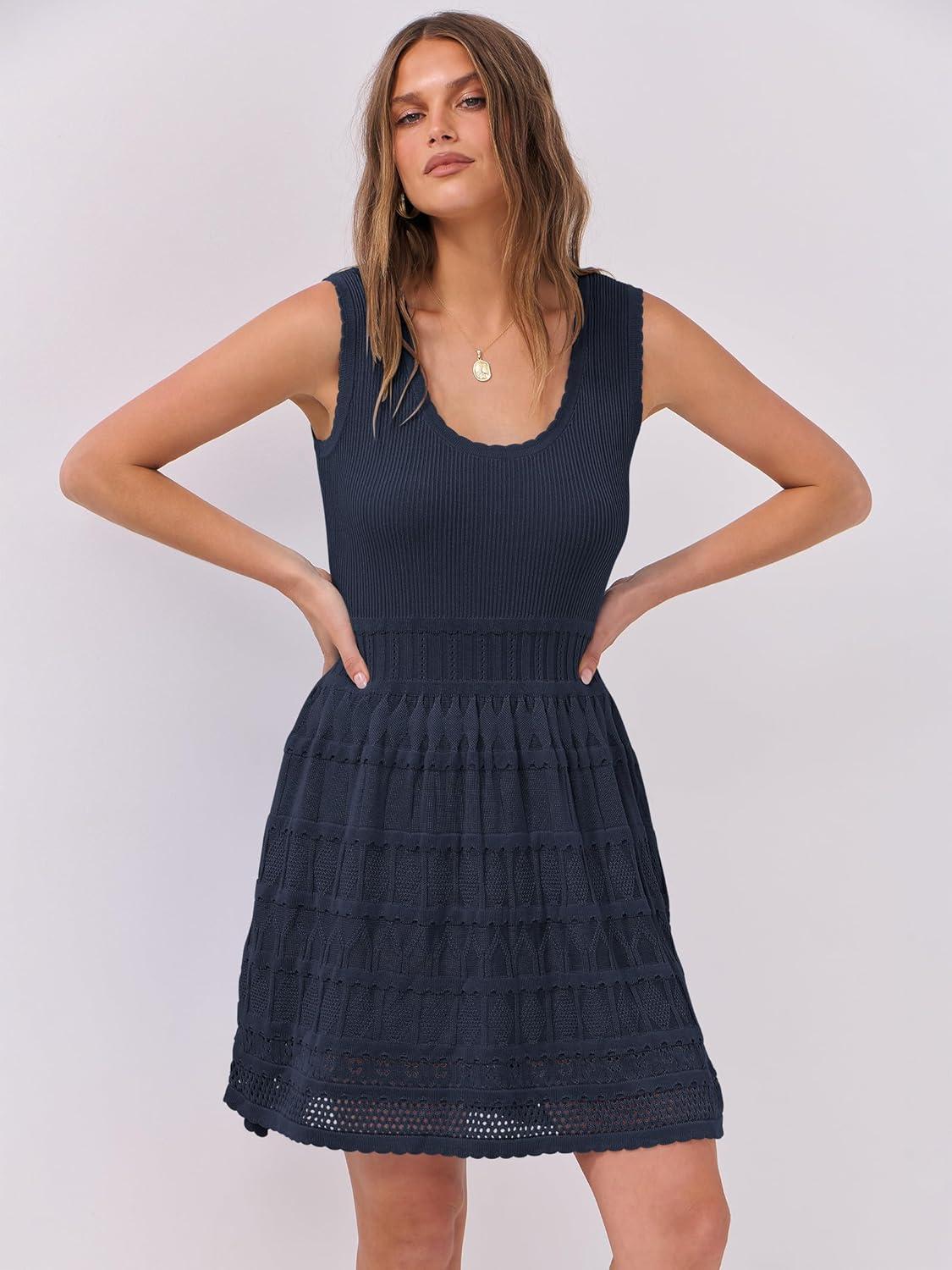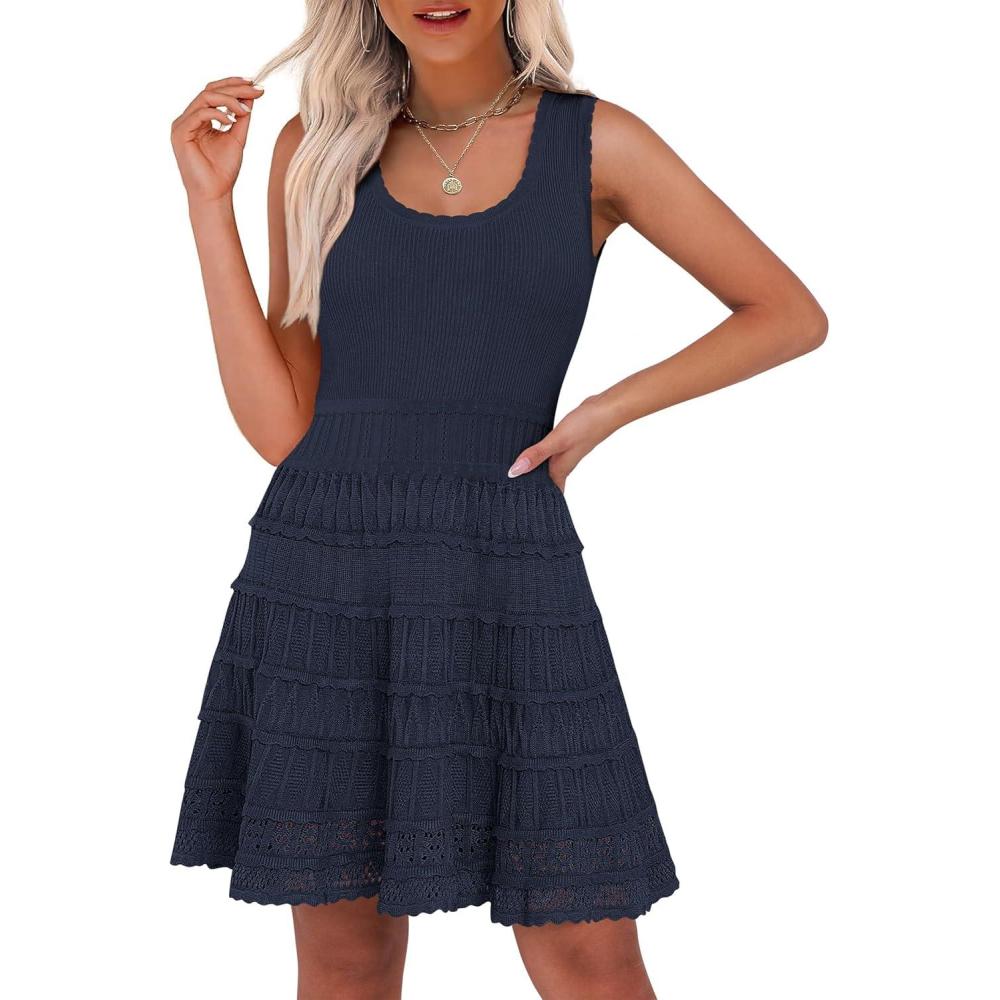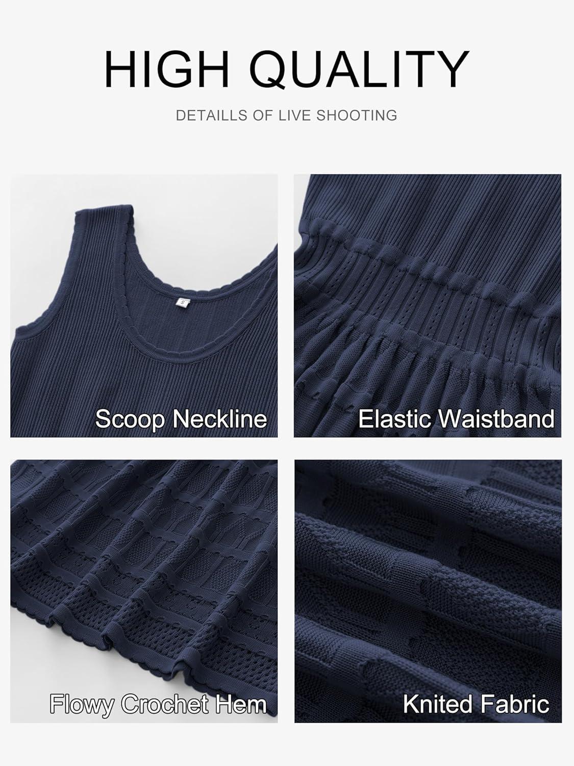 ANRABESS Womens Sundress Beach Vacation Mini Tank Dresses Summer Casual Crochet Knit Scoop Neck Sleeveless Dress(Navy Blue)