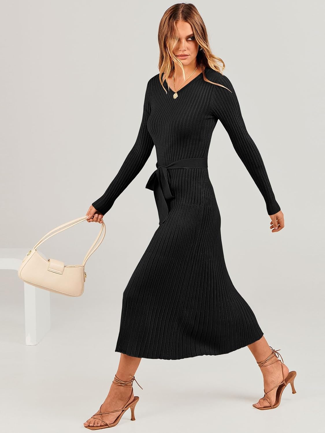 Be the first to review “ANRABESS Women’s Sweater Dress 2024 Long Sleeve V Neck Tie Waist Slim Fit Elegant Ribbed Knit Bodycon Midi Dress(Black)” Cancel reply