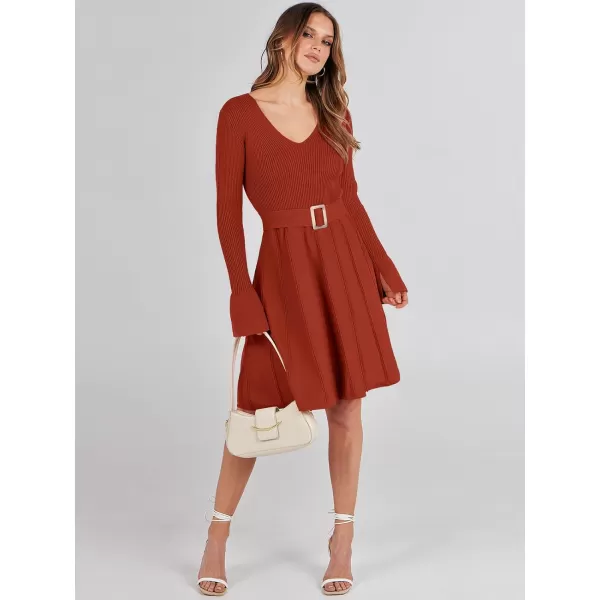 Features – Elevate your fall wardrobe with this chic sweater dress featuring bell long sleeves, a flattering V-neckline, and a trendy tie waist. The ribbed knit fabrication provides a cozy, comfortable feel, while the versatile short length allows for easy layering. The A-line shape with pleated details gives the sweater dress a stylish flair that's perfect for any occasion.