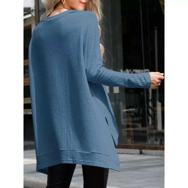 Features – This casual oversized pullover sweaters designed V neck, waffle knit, batwing sleeve, loose fit, high low hem, side slit, flattering tunic tops.