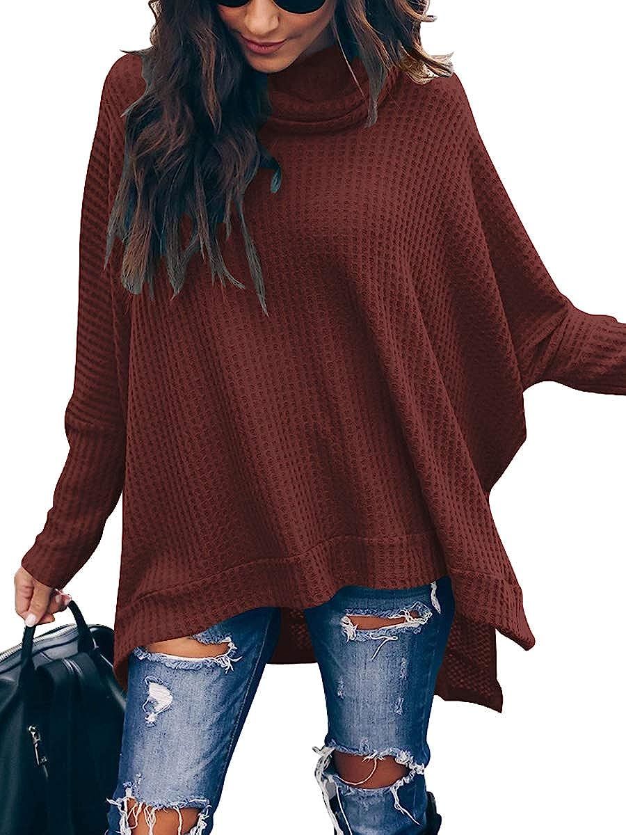 Get your hands on our exclusive ANRABESS Women’s Sweater Oversized Turtleneck Long Batwing Sleeve Waffle Knit Split Hem Tunic Pullover Tops collection, now at a discounted price.