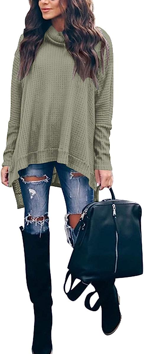 Features – This casual oversized pullover sweaters designed cowl neck, waffle knit, batwing sleeve, loose fit, high low hem, side slit, flattering tunic tops.