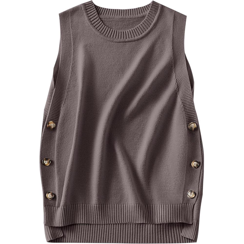 imageANRABESS Womens Sweater Vest Summer Sleeveless Crewneck Ribbed Knit Side Button Loose Pullover Tank Tops 2025 Fall OutfitsNutmeg